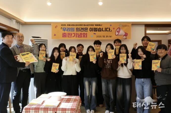 태산뉴스 김준수 기자 | 의왕시청소년재단 산하 의왕시청소년수련관에서 운영하는 청소년기자단 ‘헤르메스’가 12월 21일, 한 해 동안 작성한 기사를 담은 도서 '우리의 의견은 이렇습니다'의 출판 기념 행사를 성황리에 마무리했다.