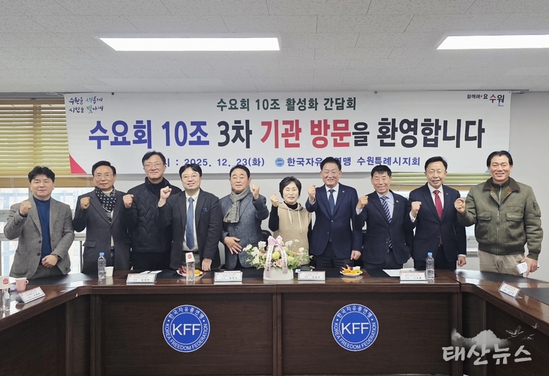 태산뉴스 이월금 기자 | 수원특례시 수요회10조는 23일, 한국자유총연맹 수원시지회 회의실에서 기관 간 협력 강화를 위한 기관 방문 간담회를 개최했다.