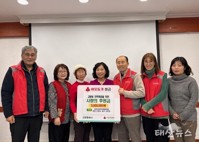 차형수 고봉동장은 “어려운 시기에 따뜻한 나눔을 실천해 주셔서 더욱 뜻깊다”며 “전해주신 성금은 도움이 절실한 주민들을 위해 소중히 사용하겠다”고 전했다.