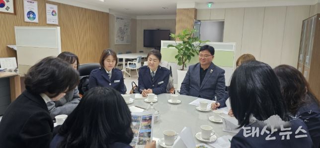 태산뉴스 김준수 기자 | 경기도의회 교육기획위원회 성기황 의원(더불어민주당, 군포2)은 23일, 군포의왕교육지원청에서 정숙경 교육장과 함께 학부모폴리스 관계자들을 만나 지속적인 활동을 위한 교육지원청과의 협력을 당부했다.