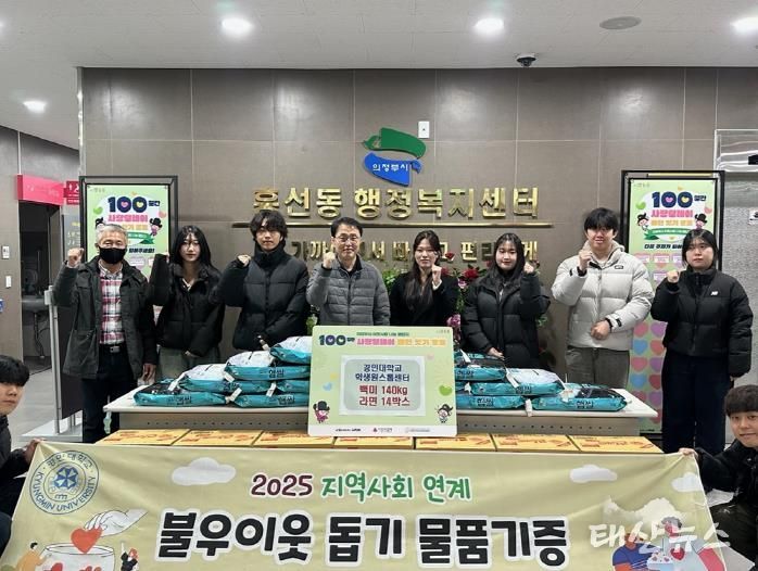 태산뉴스 이동욱 기자 | 의정부시 흥선동행정복지센터는 12월 23일 경민대학교 학생원스톱센터가 ‘100일간 사랑릴레이 배턴 잇기’에 동참하해 백미 140kg, 라면 14상자를 기탁했다고 밝혔다.