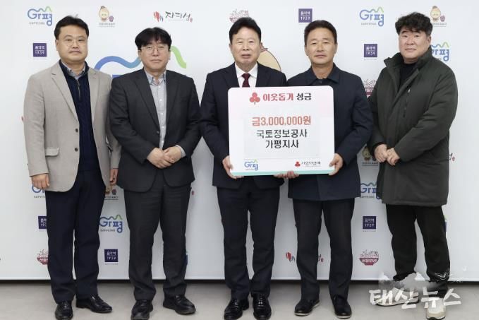 태산뉴스 이동욱 기자 | 한국국토정보공사 가평지사는 지난 24일 지역 내 어려운 이웃을 돕기 위한 성금 300만원을 가평군에 기탁했다.