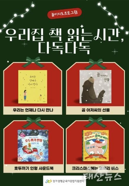태산뉴스 이동욱 기자 | 양평군육아종합지원센터는 연말을 맞아 관내 영유아 가정을 대상으로 가정에서 실천할 수 있는 부모교육과 놀이·독서 연계 프로그램을 운영했다.