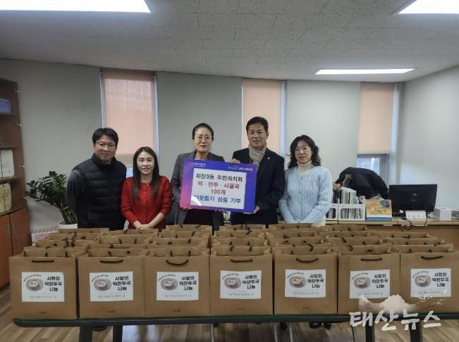 조전희 회천3동장은 “회천3동의 어려운 이웃들을 위해 따뜻한 마음을 모아 기부해주신 주민자치회에 깊이 감사드린다”며 “정성껏 마련해주신 이 마음을 관내 취약가구에 전달하여 온정 가득한 연말을 보내실 수 있도록 하겠다”고 전했다.