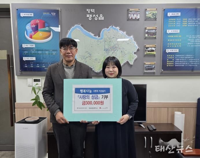 태산뉴스 이동욱 기자 | 경토리민요연구소의 박정은 대표는 지난 24일, 팽성읍 행정복지센터를 방문해 저소득 가구 지원을 위한 성금 30만 원을 전달했다.