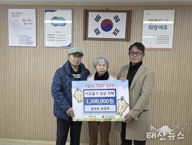 태산뉴스 이동욱 기자 | 금사면 생활개선회 최종희 회장이 배우자와 함께 지난 24일 여주시 금사면행정복지센터를 방문하여 이웃돕기 성금 120만원을 기탁했다.