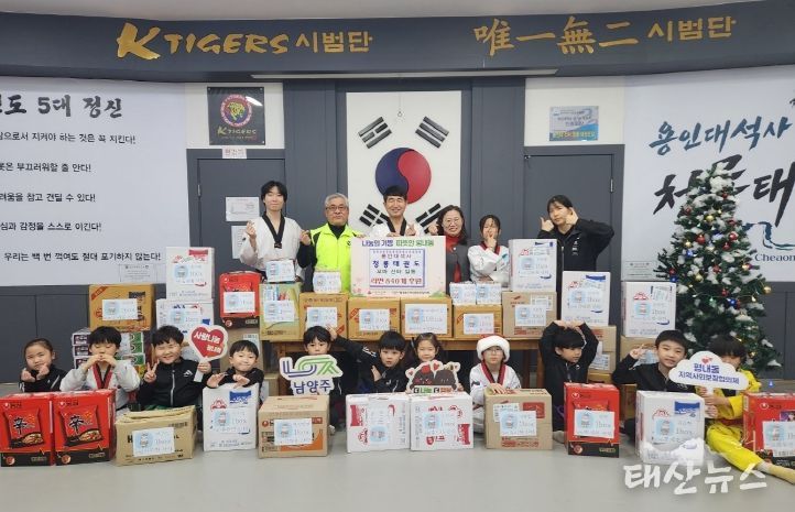 태산뉴스 이동욱 기자 | 남양주시는 지난 24일 크리스마스를 맞아 평내동에 위치한 용인대석사 청룡태권도(관장 박환균) 원생들이 ‘꼬마 산타’로 등장해 소중한 마음이 담긴 라면 840개를 기부했다고 밝혔다.