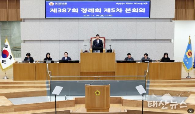 경기도의회는 이날 제387회 정례회 5차 본회의를 열고 2026년도 새해 예산안을 의결하며 회기 일정을 끝마쳤다.