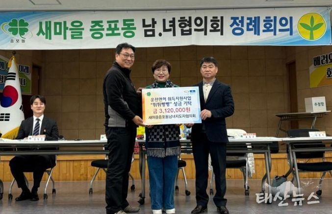 태산뉴스 이동욱 기자 | 이천시 증포동 새마을남녀협의회는 12월 26일 증포동 저소득 사회초년생을 위한 운전면허 취득(‘뛰뛰빵빵’) 지원을 위해 성금 312만 원을 증포동행정복지센터에 기탁했다.