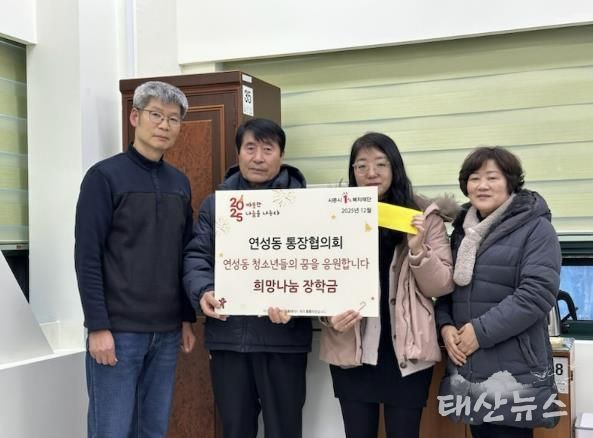 강문원 연성동 통장협의회장은 “연성동의 미래인 청소년들이 어려운 환경 속에서도 자신의 꿈을 잃지 않고 꿋꿋하게 성장하기를 바란다”라며 “앞으로도 연성동 통장협의회는 이웃들에게 실질적인 힘이 될 수 있는 나눔 활동을 이어 가겠다”라고 말했다.