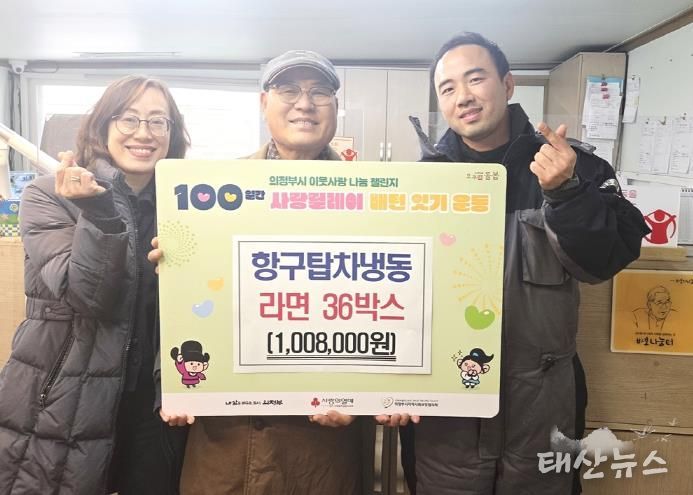 태산뉴스 이동욱 기자 | 의정부시 장암동주민센터는 12월 29일 항구탑차냉동이 라면 36상자(100만 원 상당)를 기부하며 ‘100일간 사랑릴레이 배턴 잇기’에 동참했다고 밝혔다.