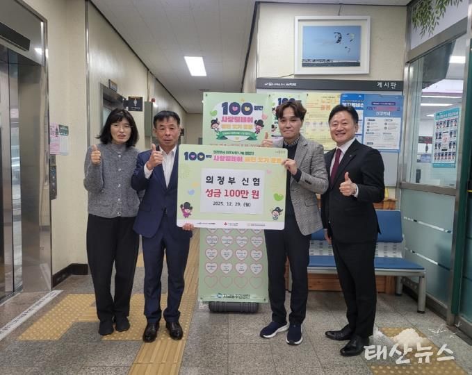 태산뉴스 이동욱 기자 | 의정부시 자금동주민센터는 12월 29일 의정부신협이 어려운 이웃을 위해 성금 100만 원을 기탁하며 ‘100일간 사랑릴레이 배턴 잇기’에 동참했다고 밝혔다.