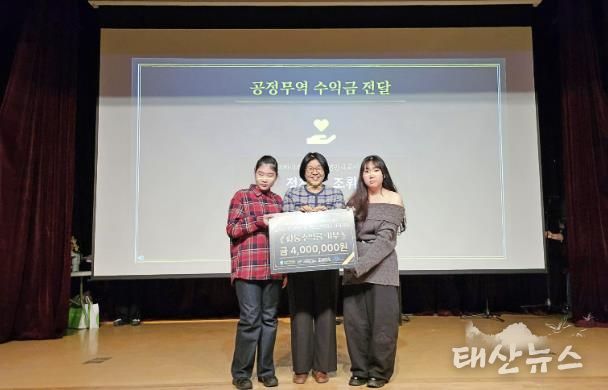 태산뉴스 이동욱 기자 | 성남시청소년청년재단 서현유스센터은 지난 12월 27일, 청소년 공정무역기획단이 운영한 카페 수익금 400만원을 한국공정무역마을위원회에 전달했다고 밝혔다.