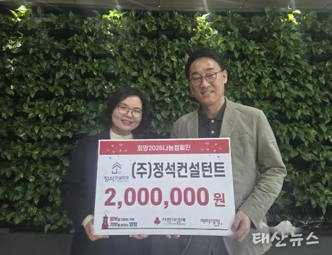 정연태 ㈜정석컨설턴트 대표는 “도시계획 분야에 종사하는 기업으로서 현장에서 접하는 지역의 생활 여건과 어려움에 관심을 가져왔다”며 “추운 겨울을 앞두고 도움이 필요한 이웃들에게 조금이나마 온기가 전해지기를 바라는 마음으로 기탁을 결정했다”고 말했다.