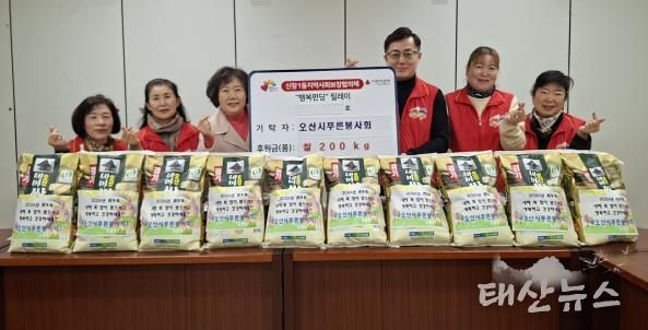 태산뉴스 이동욱 기자 | 오산시 신장1동 행정복지센터는 오산시푸른봉사회로부터 신장1동 취약계층 지원을 위한 쌀 200kg을 기탁받았다고 밝혔다.