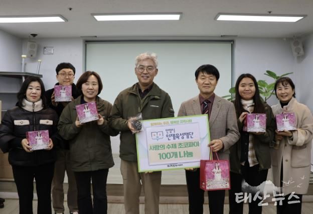 태산뉴스 이동욱 기자 | 안양시 인재육성재단은 지난 8일 재단 내 베네치아 중강당에서 창립 15주년을 기념해 임직원이 함께하는 ‘사랑의 수제 초코파이 나눔’ 사회공헌활동을 진행했다고 12일 밝혔다.