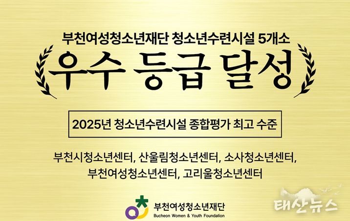 태산뉴스 이동욱 기자 | 부천여성청소년재단이 청소년수련시설 5개소(부천시청소년센터, 산울림청소년센터, 소사청소년센터, 부천여성청소년센터, 고리울청소년센터)가 성평등가족부 주관 2025년 청소년수련시설 종합평가에서 5개 시설 모두 최고 수준인 ‘우수’ 등급을 달성하는 쾌거를 이루었다.