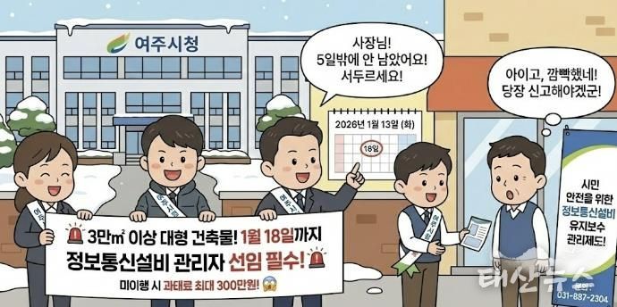 현재 여주시 내 연면적 3만㎡ 이상인 대형 건축물의 관리주체는 오는 2026년 1월 18일까지 정보통신설비 유지보수 관리자를 선임하고 지자체에 신고를 완료해야 합니다.