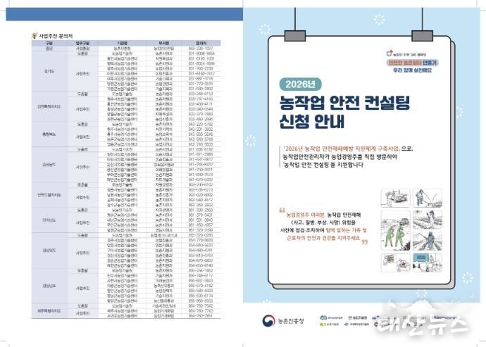 특히 올해는 중대재해처벌법 강화로 현장 대응의 중요성이 더욱 커짐에 따라, 상시근로자 5인 이상을 고용한 농업경영주를 중심으로 상담 대상 농가를 모집한다. 이를 통해 농업 현장에서의 법적 책임 이행은 물론, 실질적인 사고 예방과 안전 관리 수준 향상을 도모할 계획이다.