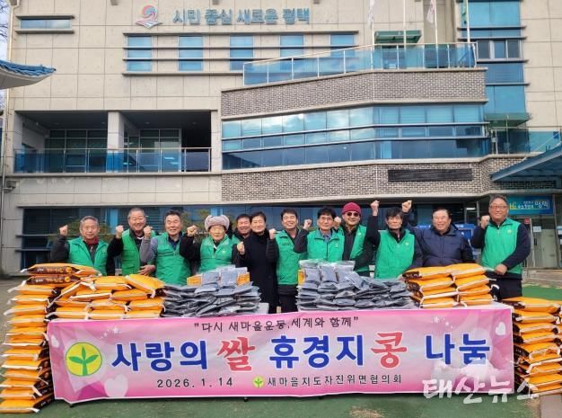 태산뉴스 이동욱 기자 | 평택시 새마을지도자 진위면협의회는 지난 14일 진위면 행정복지센터에서 ‘사랑의 쌀·콩 나눔행사’를 가졌다.