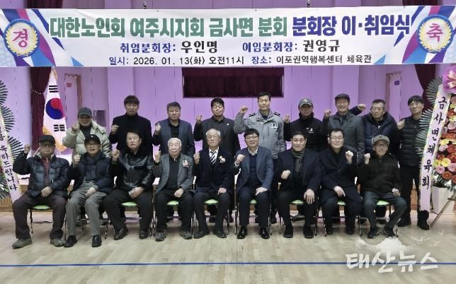 태산뉴스 이동욱 기자 | 금사면은 1월 13일, 이포권역행복센터에서 2026년 대한노인회 금사면분회장 이·취임식을 성황리에 개최했다. 이날 행사에는 금사면 기관·단체장과 각 경로당 회장 등 관계자들이 참석해 금사면 노인회의 새로운 출발을 함께 축하했다.