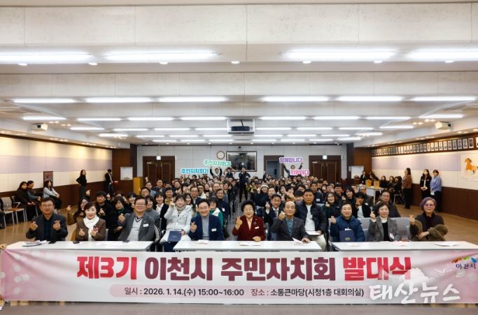 태산뉴스 이동욱 기자 | 이천시는 지난 14일 시청 소통큰마당에서 제3기 이천시 주민자치회 발대식을 개최했다. 김경희 이천시장, 박명서 이천시의회 의장 및 시의원을 비롯하여 제3기 주민자치회 위원 140여 명이 참석한 이번 행사로 제3기 주민자치회의 출범을 알리고 본격적인 활동의 시작을 함께 축하했다.
