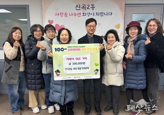 태산뉴스 이동욱 기자 | 신곡2동주민센터는 지난 14일 신곡2동 바르게살기위원회가 이웃돕기 성금 20만원을 기탁했다고 밝혔다.