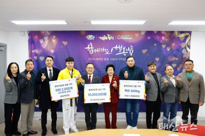 태산뉴스 이동욱 기자 | 2026년 1월 14일 이천시청에서 지역사회 나눔문화 확산을 위한 기탁식이 개최됐다. 이날 기탁식에는 이천시 연합동문회, (주)세이프코리아, 태호태권도 관계자들이 참석해 취약계층을 위한 물품과 성금을 전달하며 따뜻한 동행을 실천했다.