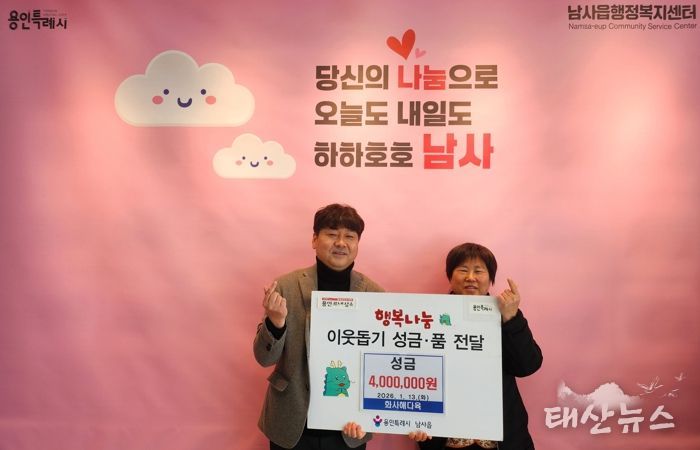 처인구 남사읍은 13일 화사해다육에서 성금 400만원을 기탁했다고 밝혔다.