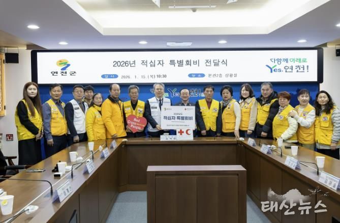 태산뉴스 이동욱 기자 | 연천군은 지난 15일 군청 상황실에서 연천군수, 대한적십자사 경기도지사 우광호 사무처장, 연천군협의회 금가현 회장 및 회원 등이 참석한 가운데 2026년 적십자 특별회비 전달식을 개최했다.