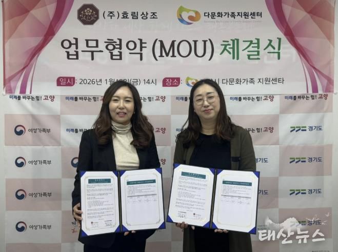태산뉴스 이동욱 기자 | 고양시다문화가족지원센터는 지난 16일, 효림상조와 다문화가정의 안정적인 일상지원과 지역사회 상생을 위한 업무협약(MOU)을 체결했다고 밝혔다.