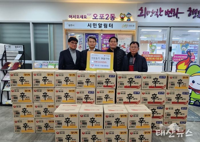 태산뉴스 이동욱 기자 | 광주시 매산1통 기업인협의회는 20일 오포2동 행정복지센터를 방문해 100만 원 상당의 라면을 기탁하며 지역사회 나눔을 실천했다.