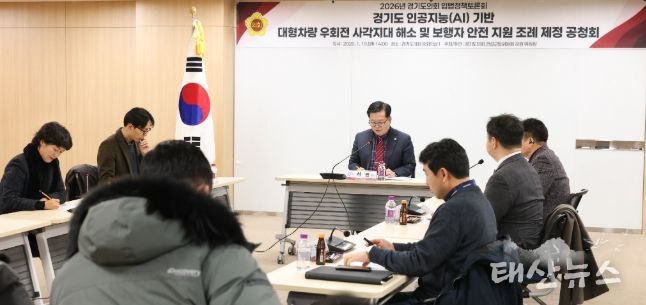 태산뉴스 김준수 기자 | 경기도의회 건설교통위원회 허원 위원장(국민의힘·이천2)은 19일 경기도의회 중회의실에서 '경기도 인공지능(AI) 기반 대형차량 우회전 사각지대 해소 및 보행자 안전 지원 조례' 제정을 위한 공청회를 개최했다.