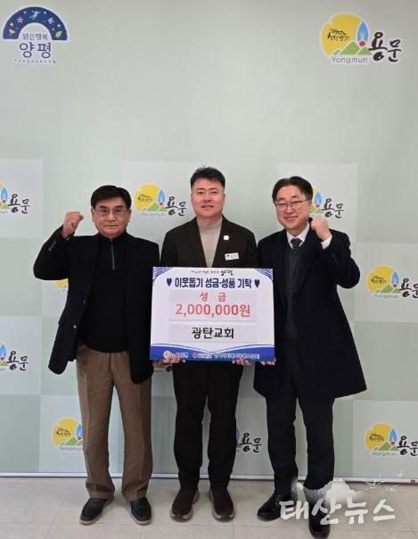 태산뉴스 이동욱 기자 | 양평군 용문면은 광탄교회가 지난 28일, 지역 내 어려운 이웃을 돕기 위해 이웃돕기 성금 200만 원을 기탁했다고 밝혔다.