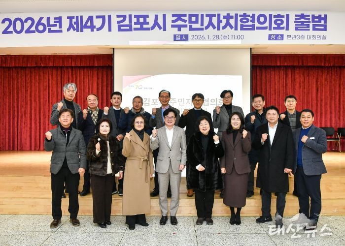 태산뉴스 이동욱 기자 | 2026년 제4기 주민자치협의회가 출범하며 새로운 도약을 알렸다. 김포시는 28일 시청 대회의실에서 14개 읍‧면‧동 4기 주민자치회장으로 구성된 주민자치협의회의 첫 정기회의를 개최하고, 본격적인 4기 주민자치회 운영의 시작을 알렸다.