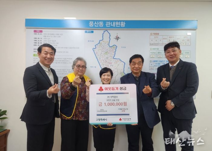 태산뉴스 이동욱 기자 | 고양특례시 일산동구 풍산동은 지난 28일 ㈜대덕운수가 취약계층 지원을 위한 성금 100만 원을 기부했다고 밝혔다.