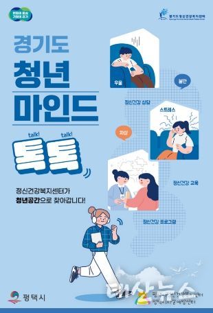 태산뉴스 이지율 기자 | 평택시는 학업과 취업 등 환경적 요인으로 증가하는 청년 정신질환에 미리 개입하고 적절한 치료 서비스를 제공하고자 ‘청년마인드톡톡’ 사업을 운영한다고 밝혔다.