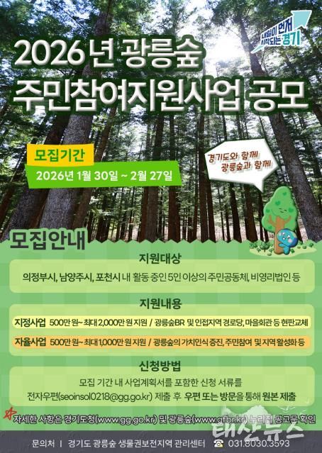 태산뉴스 김준수 기자 | 경기도가 광릉숲 생물권보전지역 활성화를 위해 2026년 광릉숲 주민참여지원사업 참여자를 모집한다.