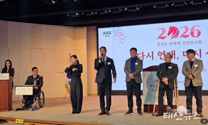 태산뉴스 김준수 기자 | 경기도의회 보건복지위원회 김용성 의원(더불어민주당, 광명4)은 27일, 경기도경제과학진흥원 광교홀에서 열린 ‘2026년 경기도 장애계 신년인사회’에 참석해 장애계 관계자들과 새해 인사를 나누고, 지속적인 협력과 연대를 다짐했다.