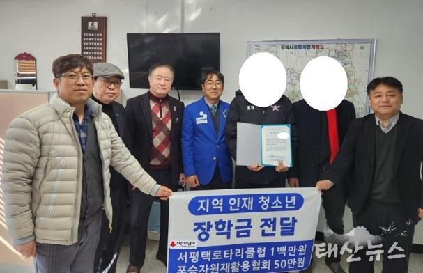 태산뉴스 이동욱 기자 | 평택시 포승읍을 기반으로 활동하는 단체인 서평택로타리클럽과 자원재활용협회가 지난 29일 포승읍 행정복지센터에서 지역 인재 청소년에게 장학금 100만 원(서평택로타리클럽)과 50만 원(포승자원재활용협회)을 각각 전달하는 ‘지역 인재 청소년 장학금 전달식’을 가졌다.