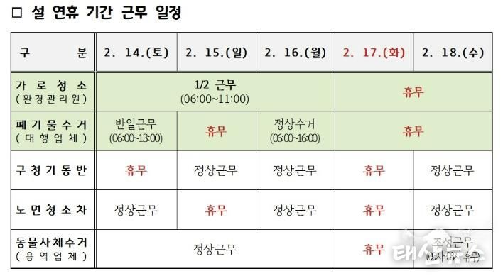 이와 함께 연휴 기간 중 생활폐기물 수거 일정을 공동주택 게시판, 안내방송, 홈페이지 등을 통해 알리고, 음식물 쓰레기 감량과 올바른 분리배출방법도 적극 홍보 예정이다.