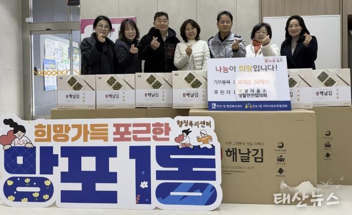 태산뉴스 이동욱 기자 | 수원시 영통구 망포1동은 지난 2일, 태장파출소 생활안전협의회가 어려운 이웃에게 전달해 달라며 조미김 50박스를 후원했다고 밝혔다.