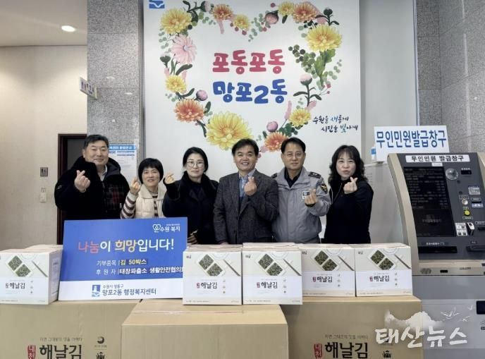 태산뉴스 이동욱 기자 | 영통구 망포2동 행정복지센터는 지난 2일, 태장파출소 생활안전협의회가 설 명절을 맞아 저소득 가정을 지원하기 위해 김 50박스를 망포2동 행정복지센터(동장 이용태)에 기탁했다고 밝혔다.