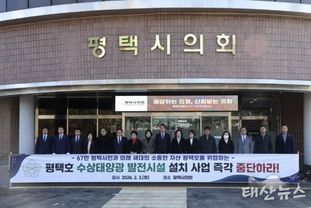 태산뉴스 이지율 기자 | 평택시의회는 2월 3일, 시의회 본관 앞에서‘평택호 수상태양광 발전시설 설치 중단 촉구 성명서’를 발표했다.
