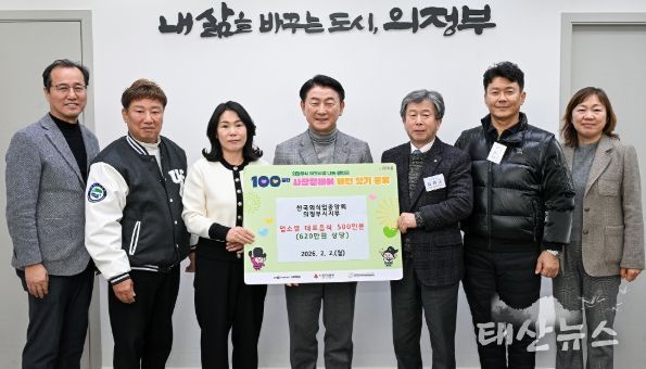 이날 시장실에서 진행된 전달식에는 김성군 지부장(큰형네의정부부대찌개 대표)을 비롯해 남효진 의정축산식당 대표, 김은주 철원양평해장국 대표, 김현식 구끼구끼 민락본점 대표, 이상훈 송추가마골 의정부점 대표 등 지역 외식업계를 대표하는 임원진이 참석해 온정을 더했다.