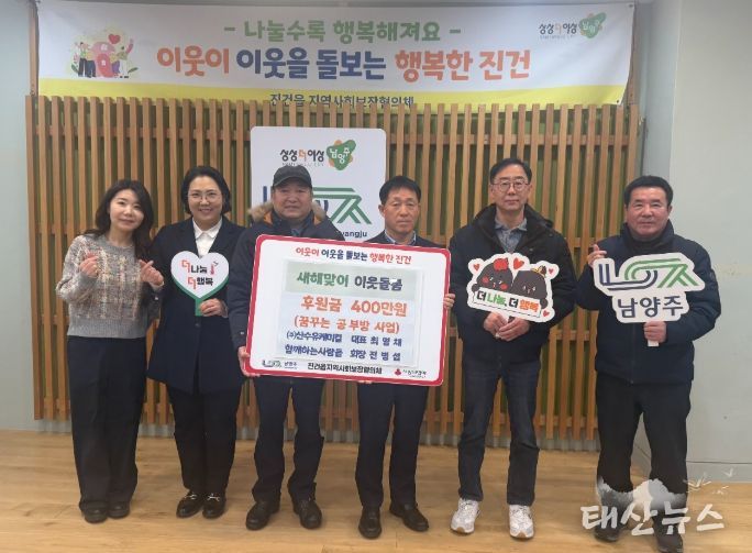 태산뉴스 이동욱 기자 | 남양주시는 지난 2일 봉사단체 ‘함께하는 사람들’이 진접읍 소재 제조업체 ㈜산수유케미컬의 후원으로 마련한 후원금 400만 원을 진건읍 취약계층 아동을 위한 ‘꿈꾸는 공부방’사업에 기탁했다고 밝혔다.