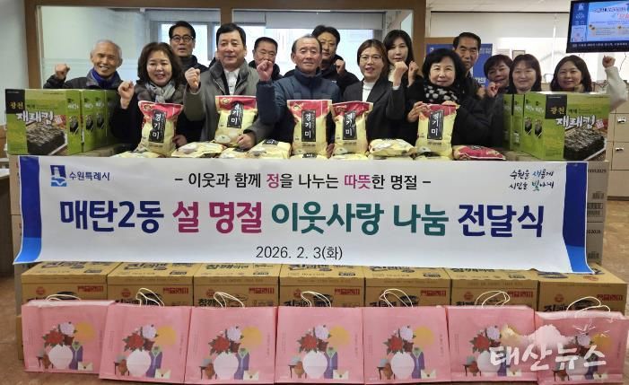 태산뉴스 이동욱 기자 | 수원시 영통구 매탄2동 행정복지센터는 지난 3일, 설 명절을 맞아 관내 어려운 이웃을 위한 ‘이웃사랑 나눔 전달식’을 개최했다.