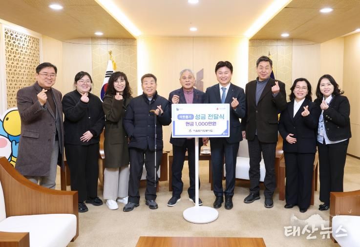 태산뉴스 이동욱 기자 | 부천시는 최근 시청 만남실에서 ‘어울림사회봉사회 장애인활동지원기관 성금 전달식’을 열고, 성금 1천만 원을 기탁받았다고 밝혔다.