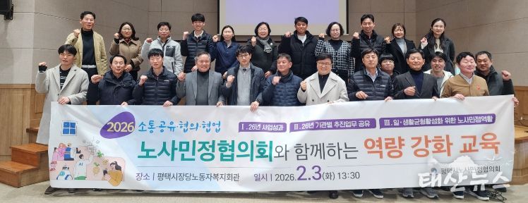 태산뉴스 이지율 기자 | 평택시노사민정협의회는 지난 3일 분과위원회 및 실무협의회 위원을 대상으로 '2026년 노사민정협의회 통합회의 및 일·생활 균형을 위한 역량 강화 교육'을 평택시 장당노동자복지회관 대회의실에서 개최했다.