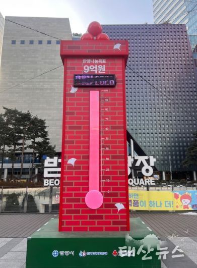 태산뉴스 이동욱 기자 | 안양시는 범계역 광장에 설치된 ‘사랑의 온도탑’이 올해도 100도를 넘겼다고 4일 밝혔다. 지난해 12월 1일부터 올해 1월 31일까지 진행된 모금 결과, 시민과 기업의 참여로 온도는 최종 101도를 기록했다.